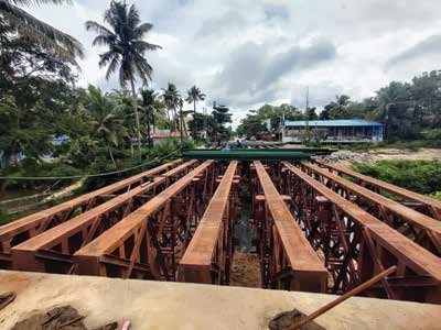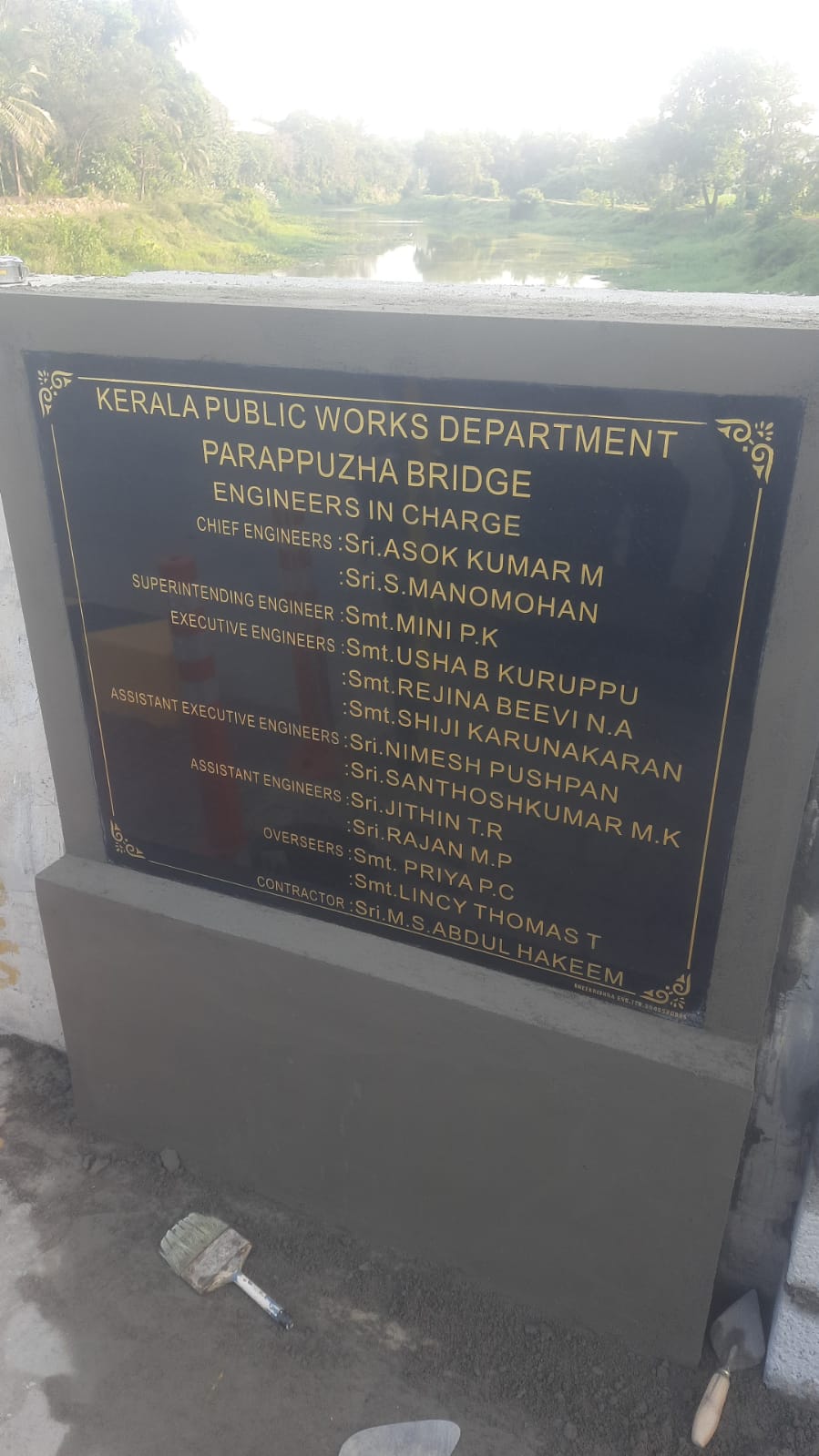 2020-2022Reconstruction of the damaged Parappuzha bridge (3-span, total length ~36 m) with widened carriageway, footpaths, kerbs and handrails to restore connectivity on Pavaratty Road.